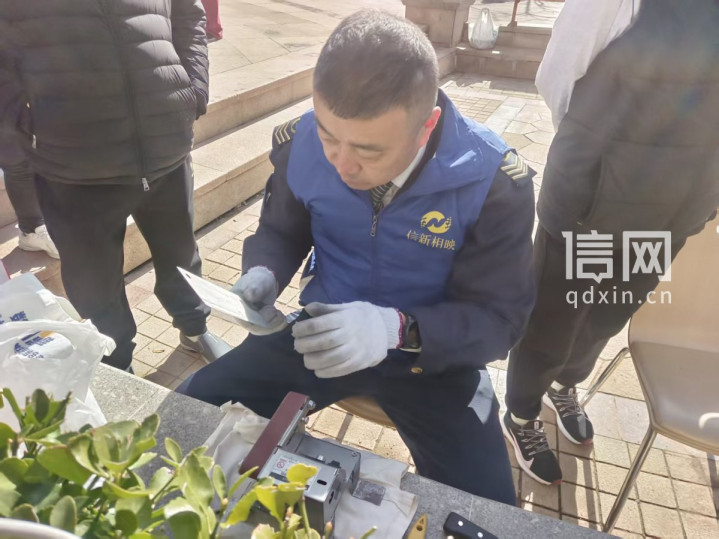 记者在磨刀区看到一位“熟面孔”,正与前来磨刀的居民热情交谈。褚嘉群谈及与志愿服务的结缘,话语朴实又真诚。他加入“信新相映”已有四五年的时间,在此之前,就已是其他单位公益活动中的积极分子。“平时工作之余有时间,就想着为社区、为街坊邻里多做点力所能及的事,身边人也都认可这份心意,所以就一直坚持下来了。”