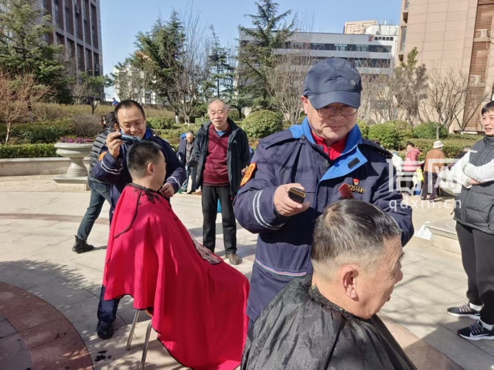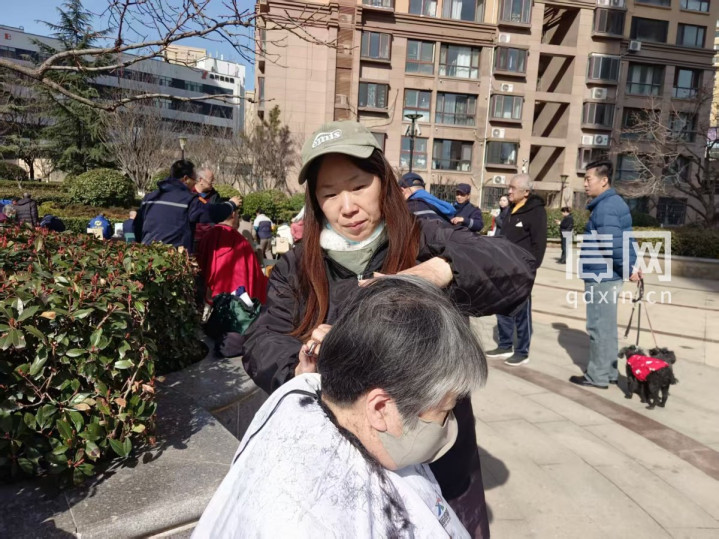 郭薇为居民理发。(来源:信网)